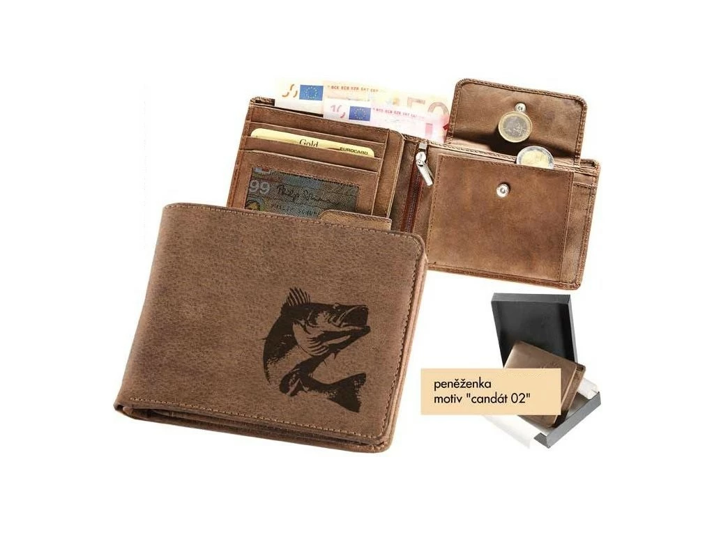 Je doplňkem, se kterým se rádi pochlubíte. Peněženku s kaprem, štikou nebo jeseterem jistě oceníte.