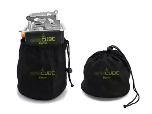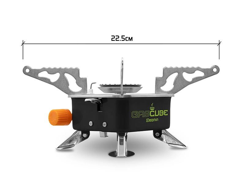 GASCUBE disponuje výklopnými nožičkami, čili jej lze bez problémů stabilně postavit v terénu. Ramena vařiče lze používat ve dvou polohách – zavřená nebo vyklopená, v závislosti na průměru použitého hrnce nebo pánve. Tělo je designováno v černé barvě s efektní zelenou grafikou.