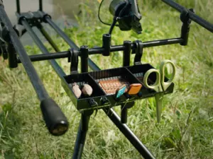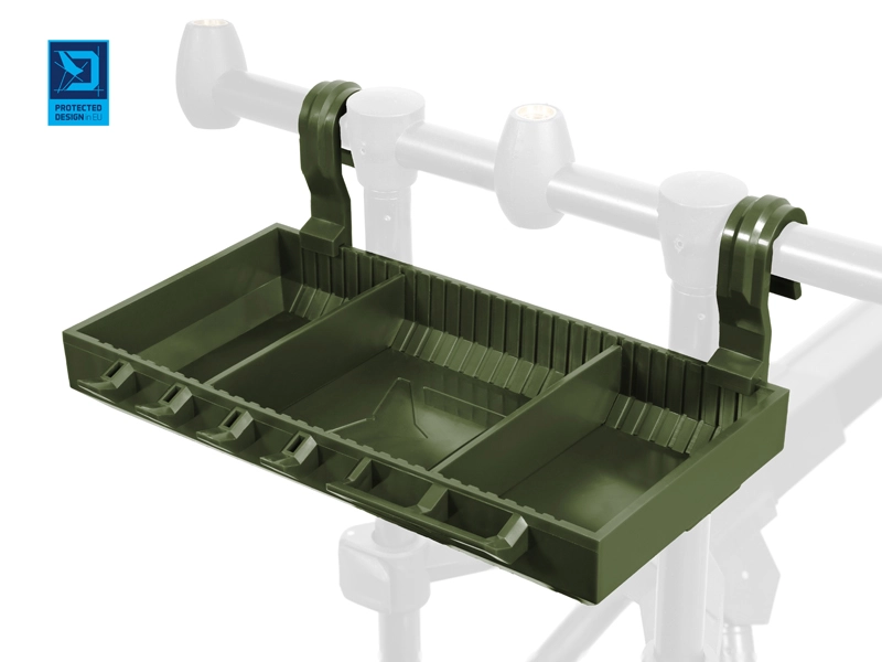 Polička slouží k uložení různého malého rybářského příslušenství nebo nástrah, což v praxi znamená, že všechny důležité drobnosti využívané pravidelně během lovu budete mít vždy po ruce, resp. připraveny přímo u vašich nahozených prutů.