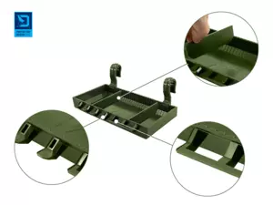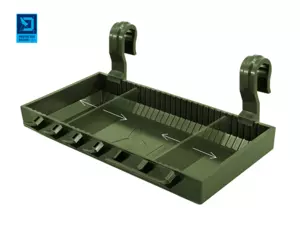 Dalším doplňkem jsou háčky v přední části sloužící pro zavěšení návazců, případně zasunutí jehly, nůžek nebo jiné pomůcky potřebné během lovu. Vyjímatelné přepážky umožňují optimalizovat úložný prostor přesně podle vašich představ. Polička je navržena v nenápadném Camo designu a tak snadno splyne s okolní přírodou.