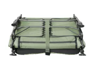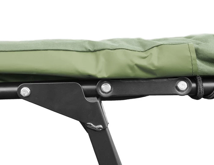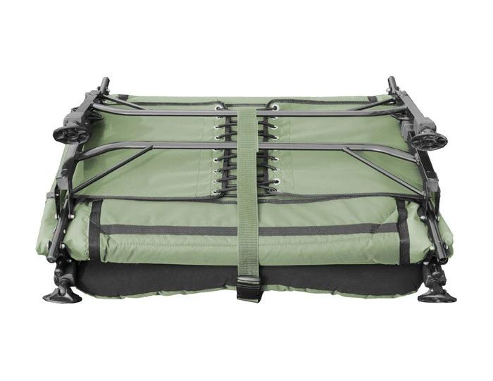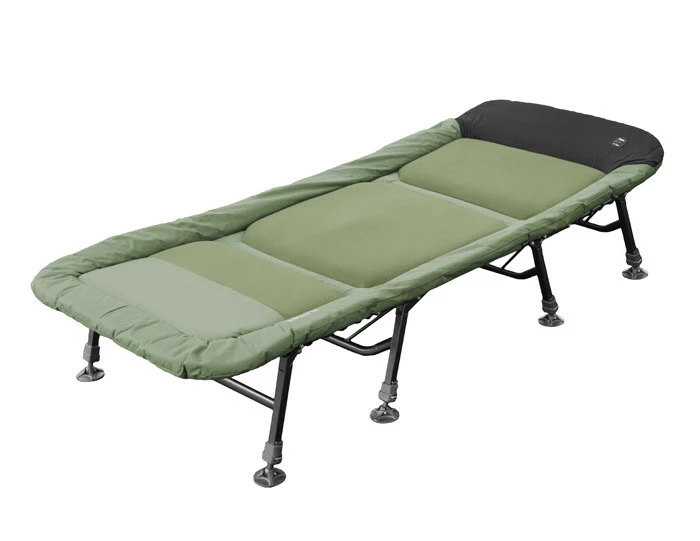 Extra vysoká postel AP8 FlatLux s plochou a velmi odolnou ocelovou konstrukcí je právem považována za náš top komfortní a luxusní model rybářských lehátek. Velkorysý rozměr matrace až 210x90cm nabízí skutečný odpočinek na rybách či v kempu. O pohodlí matrace se starají 3 měkké fleecové panely barvy khaki v kombinaci se zelenou látkou 600D. Hlavová část je tvořena kombinací černého a khaki fleecu. Ve spodní části se nachází speciální omyvatelný materiál. Pokud lehátko v této části umažete zablácenými botami, vodou a kartáčkem ho jednoduše vyčistíte. Tvrdost matrace je možné měnit v hlavové, nožní i středové části, a to pomocí pevných provazů, které se časem nenatáhnou. Každý jeden pár nohou je zamykatelný bajonetovým pinem, takže nehrozí nechtěné překlopení a otravné sklápění nohou při posouvání je minulostí. Vnitřní dva páry nohou mají zesílenou konstrukci. Dosedací patky nohou jsou flexibilní a robustní, umožňují přizpůsobení jakémukoliv nerovnému terénu. Výška lehátka je 40cm, po vysunutí teleskopických nohou až 57cm! Takto vysoké lehátko nabízí extrémní komfort při ulehnutí. Matraci ze spodní části nad kloubovými mechanismy chrání zesílená pogumovaná látka. Specialitou je vnitřní zipovatelný prostor pod hlavovou částí. Do něj si můžete vložit drobnosti, které potřebujete mít v noci po ruce. Své místo tam najde příposlech, mobilní telefon, lampa či láhev s vodou. Po složení je lehátko možné zafixovat popruhem s plastovým klipem. Tento popruh je odepínatelný. AP8 FlatLux je detailně zpracované lehátko té nejvyšší kvality.