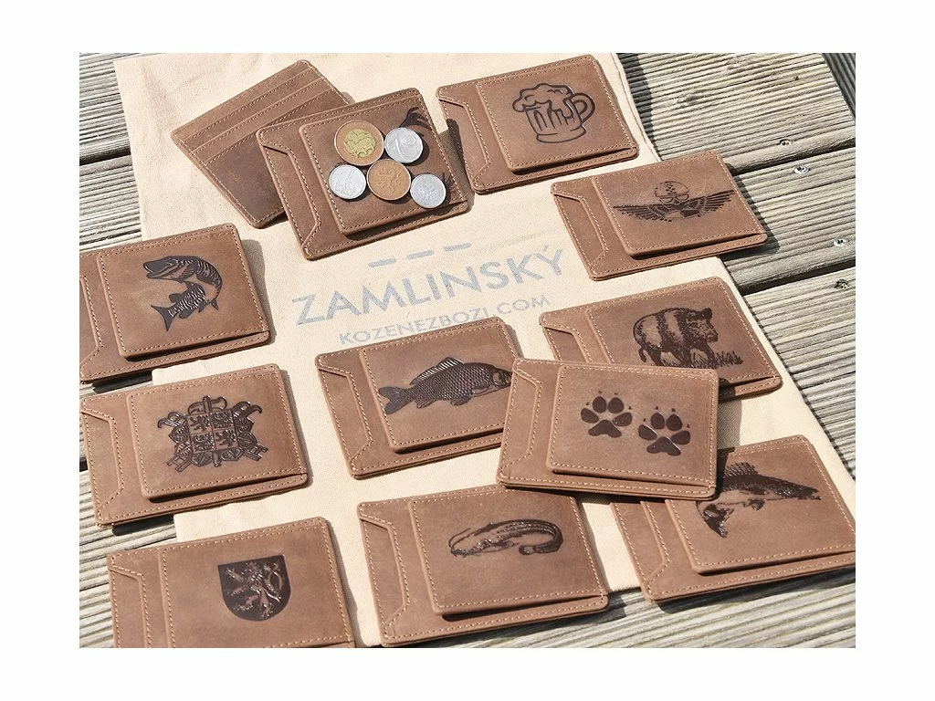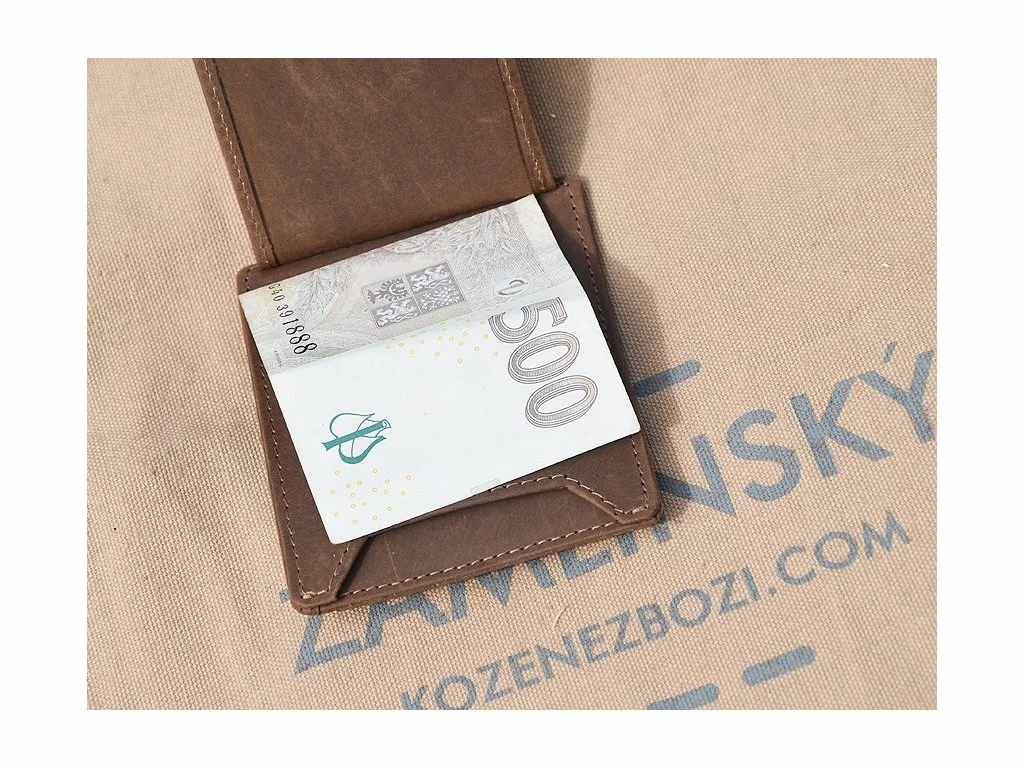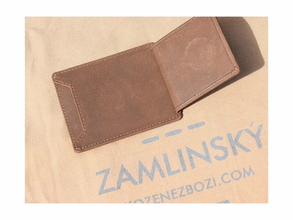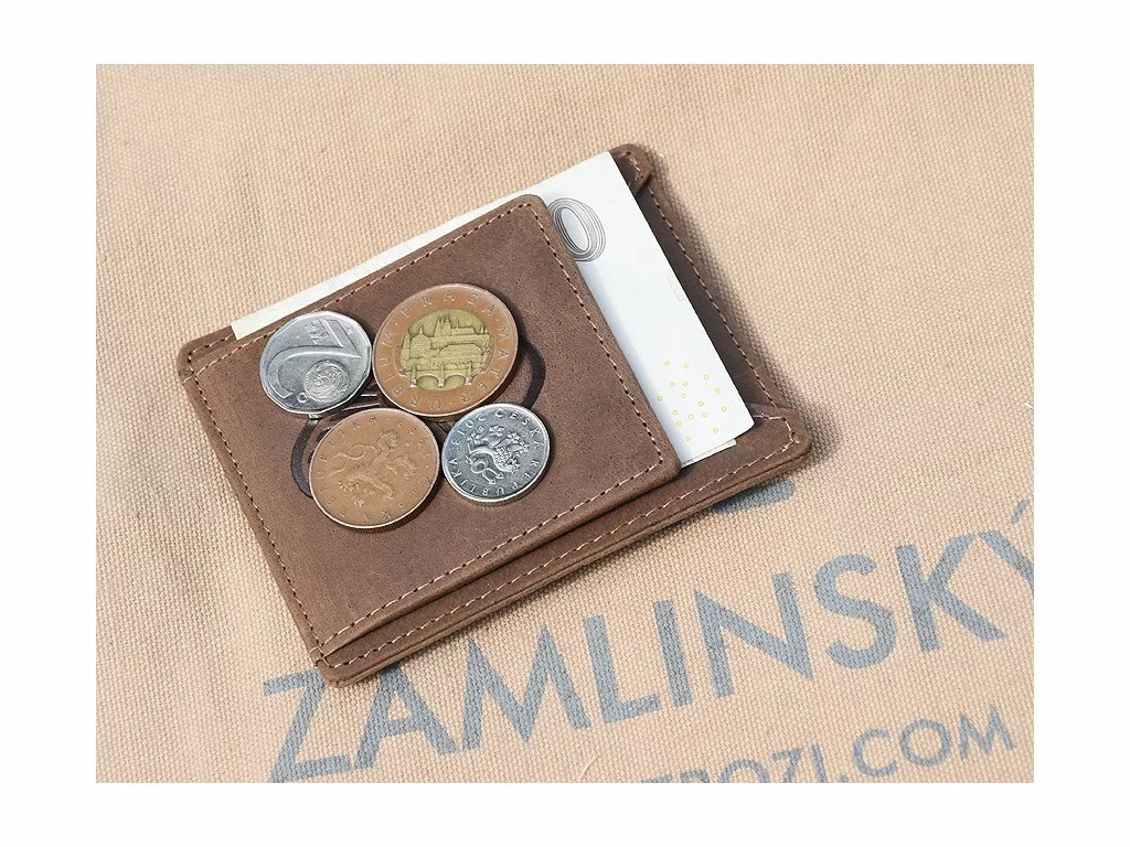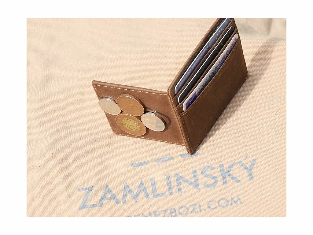 - broušená kůže, barva hnědá - neuvěřitelná kombinace mincovky, dolarky, pouzdra na karty, občanku, vizitku - skvělá věc do saka i do hospody nebo na kolo
