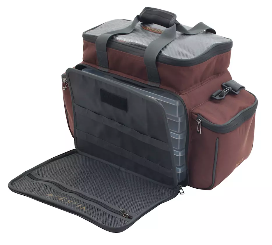 Tato taška je vhodná pro všechny naše umělé nástrahy při lovu přívlačí a lze jí použít i na ostatní drobnosti, které používáme při rybolovu. Taška je vybavena z nepromokavého materiálu Heavy Duty Good Nylon. Dále obsahuje: široký popruh přes rameno, pět plastových boxů s nastavitelnými přihrádkami o velikosti 36x23x5cm, dvě menší boční kapsy, jednu velkou vnitřní, jednu horní z průhlednýho materiálu. Rozměry jsou 55x25x37cm