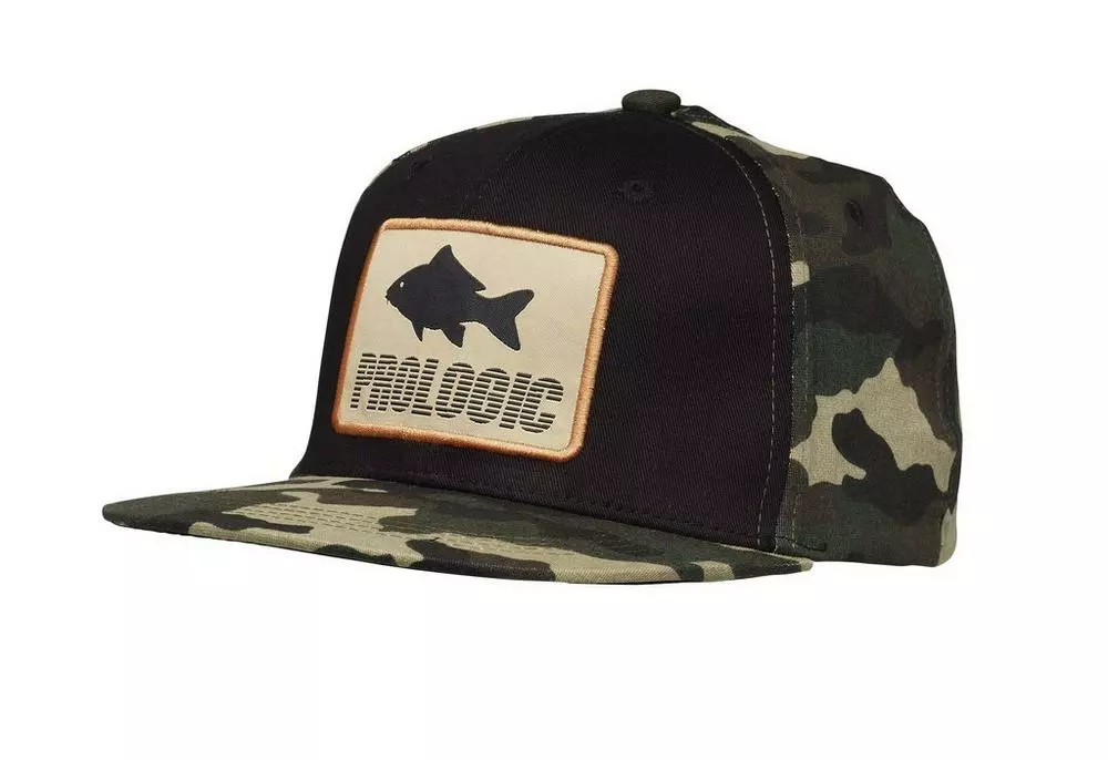 Camo kšiltovka s rovným kšiltem se stylovou rybí značkou Prologic vpředu. Další info