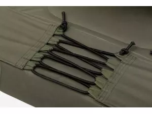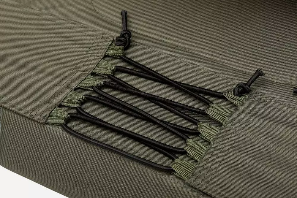 Matrace je z decentně zeleného voděodolného materiálu 600D, zatímco okraje jsou ve stylovém camo vzoru Avenger. Systém skládacího plochého rámu s dvojitým sklopením je velice kompaktní pro snadný transport a umožňuje ponechání většiny spacáků na lehátku při balení. Všechny nohy jsou plně nastavitelné a osazené otočnými patkami proti zaboření.