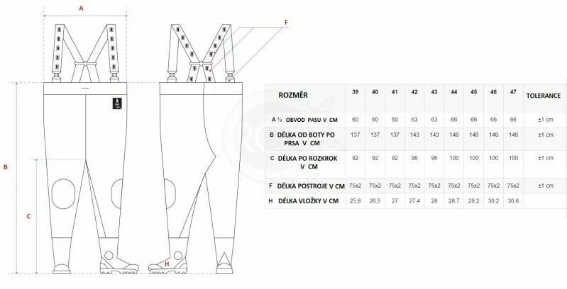 Brodící boty " do pasu STANDARD" - z PLAVITEX Heavy Duty (PVC /polyester), hmotnost 700 g / m²; tloušťka 0,70 mm. PLAVITEX je velmi silná technická tkaninaodolná vůči jinému druhu mechanickému poškození.