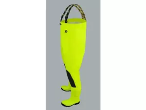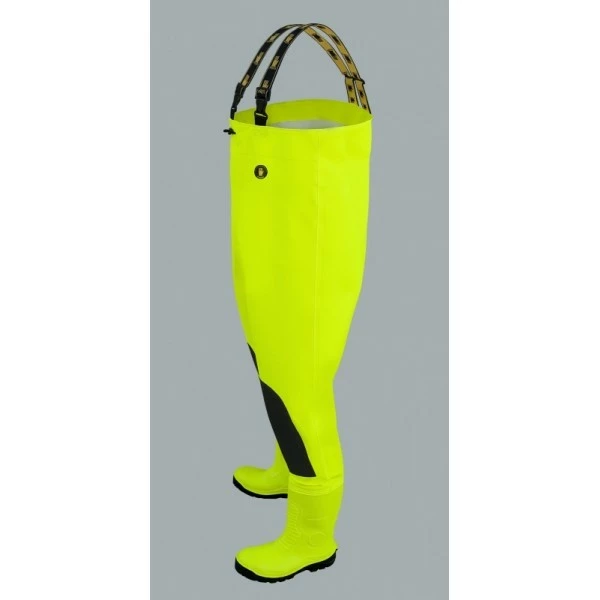 Vysoké brodící kalhoty "MAX S5" SBM01 FLUO jsou vyrobeny z tkaniny Plavitex Heavy Duty Fluo (PVC / polyester) o hmotnosti 700 g / m2, tloušťka 0,70mm s velmi vysokými hodnotami pevnosti. Zvýšená viditelnost pomocí speciální tkaniny Fluo. Tyto brodící kalhoty se doporučují používat v místech se špatnou viditelností pro vaši vyšší bezpečnost. Dodatečné vyztužení kolen chrání proti případnému oděru a poškození.