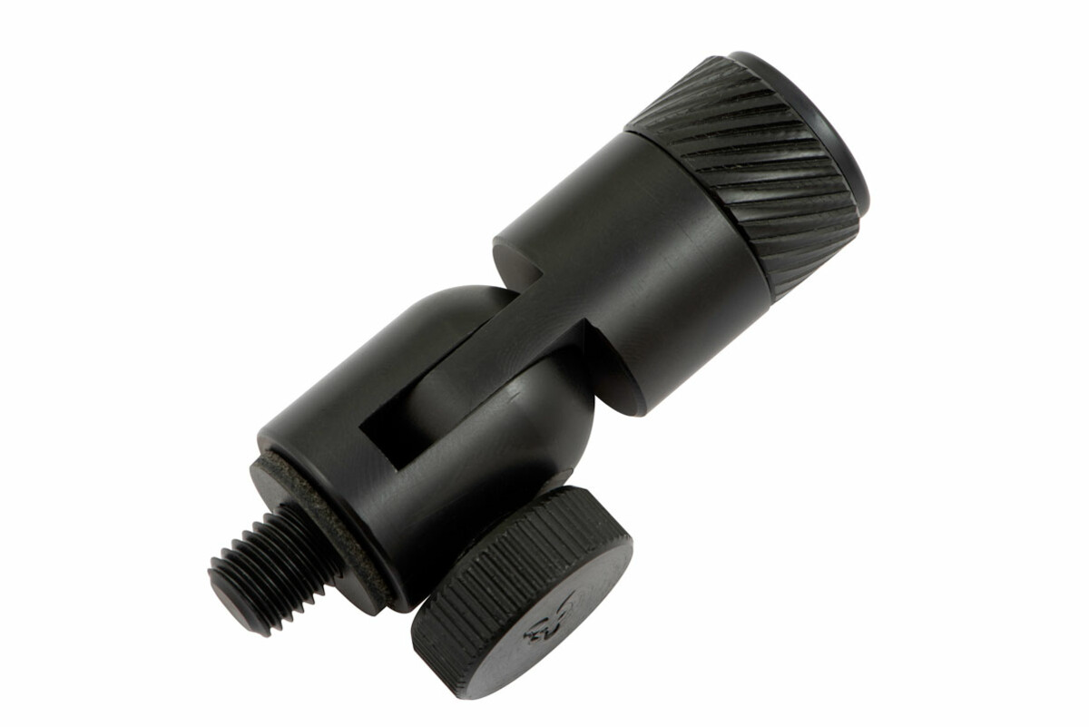 Nový úhlový adaptér je vybaven systémem QR pro přijetí alarmu nebo opěradla v horní polovině a závitem ve spodní polovině, který umožňuje jeho použití s oběma typy vidlic. Perfektní pro naklonění vašich alarmů při lovu špiček prutu.