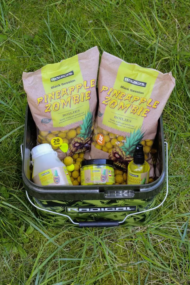 Kdo by ho neznal proslulé ananasové boilie?! Boilie Pineapple Zombie se již řadu let vyrábí dle nezměněné receptury. Jak je to možné? Fakta jsou zcela jasná, ryby chytá bombasticky, a tudíž není žádný důvod na této nástraze něco měnit. Ale co je vlastně na boilie Pineapple Zombie tak zvláštního? Odpovědí jsou opravdové kusy ovoce, které se v nástraze nacházejí. Jeho sladkost je tak silná a zároveň tak jemné krémové chuti, že jsou z toho kapři obrazně řečeno úplně mimo. Ovšem nejen zapracované kousky ovoce propůjčují boilie Pineapple Zombie jeho nedostižnou účinnost. Nyní byla při výrobě zcela vyřazena umělá sladidla a místo nich zapracován sladký ananasový nektar. Vše výše jmenované dělá z této nástrahy skutečnou zbraň v nejlepším slova smyslu. Aby byl koncept dotažen k absolutní dokonalosti, je Pineapple Zombie navíc ve žluté barvě. Žlutá má již po desetiletí pro kapry mimořádnou přitažlivost. Proč tomu tak je, nebylo ještě zjištěno, ale propůjčuje boilie garanci nádherných okamžiků u vody. Je celkem jedno, zda jde o dlouhodobou či krátkodobou krmnou kampaň, Pineapple Zombie zkrátka funguje. Jako opravdu neporazitelná kombinace se v letních měsících osvědčilo jeho nastražení spolu s tygřími ořechy. Ale i v zimě funguje toto boilie parádně, protože obsahuje mnoho ve vodě rozpustných součástí, a tudíž pracuje výtečně i při nízkých teplotách vody. Opravdový „všeuměl“!