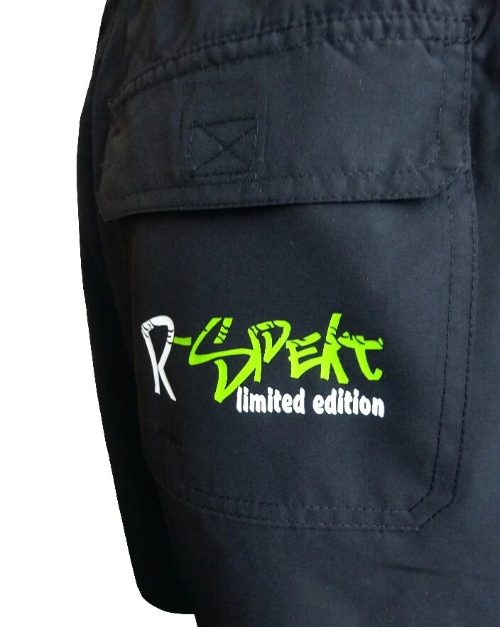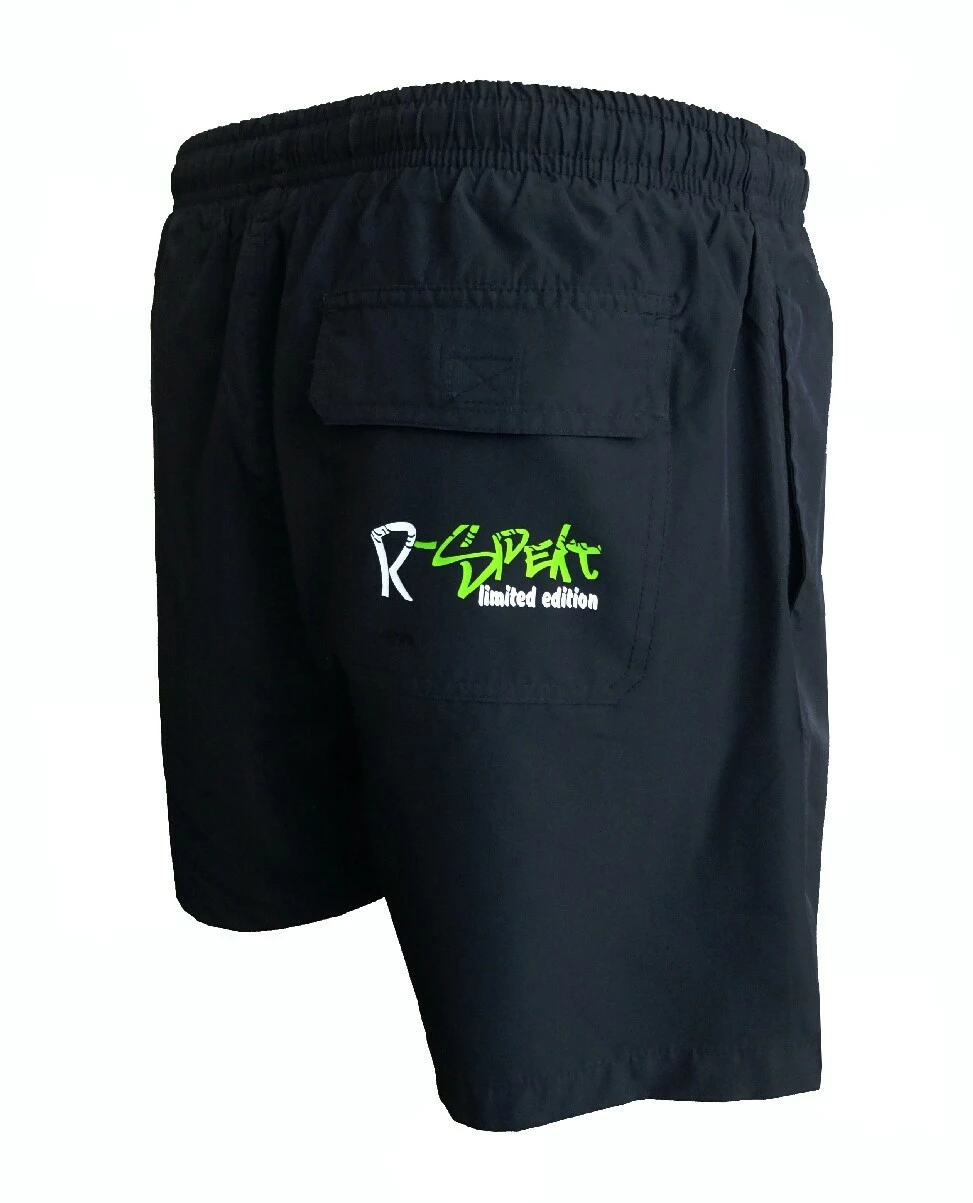 Koupací šortky R-SPEKT black představují novinku modelové řady R-SPEKT limited edition by Marek Kvaltín, tentokrát v praktické černé barvě se dvěma velkými bočními kapsami a jednou menší kapsičkou vzadu. Šortky jsou vyrobeny z kvalitního a lehkého polyesteru, který velmi dobře a rychle schne, mají uvnitř našitou příjemnou slipovou vložku a na nohavičkách pohodlné vnější boční rozparky. V pase je pak našita široká a pružná guma, která perfektně drží šortky na těle, tuto je pak ještě možné zajistit stahovacími šňůrkami, které jsou vyhotoveny také v černé barvě.