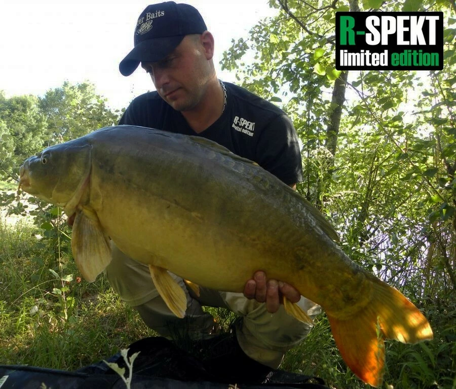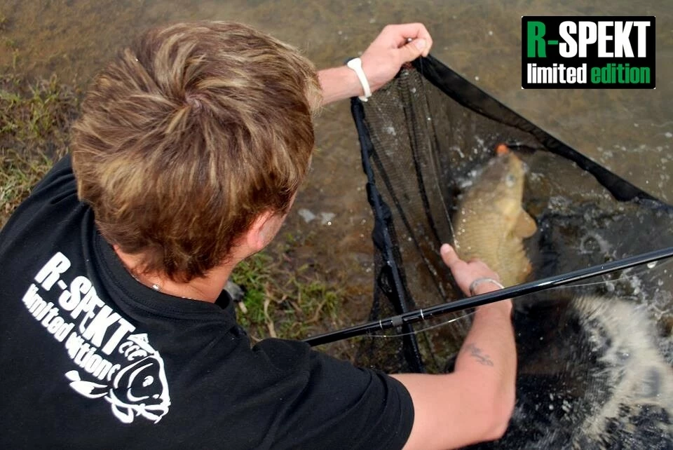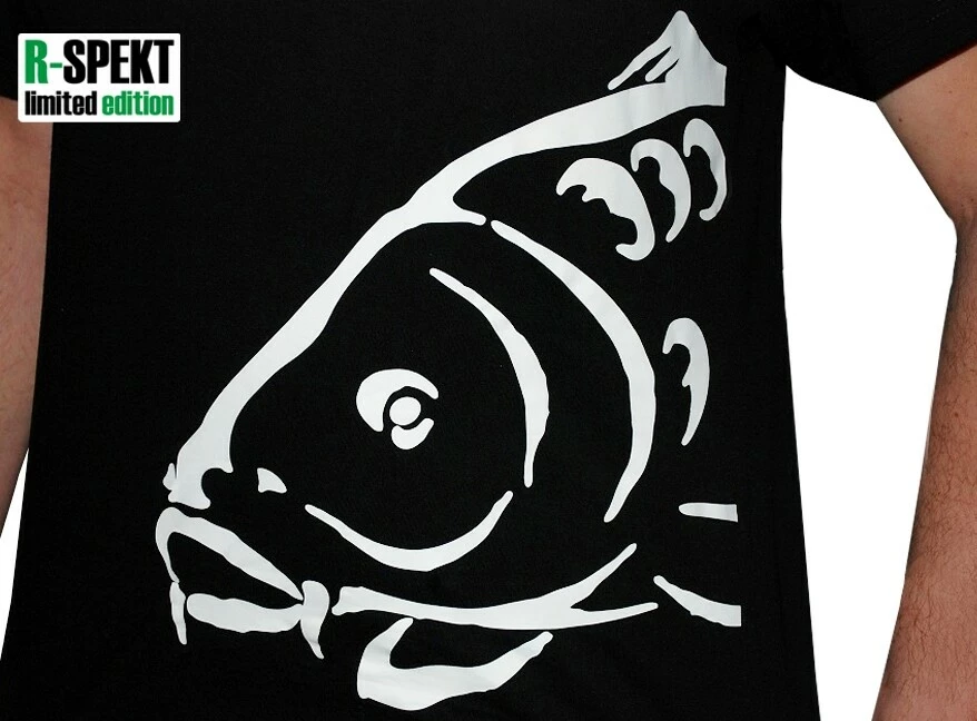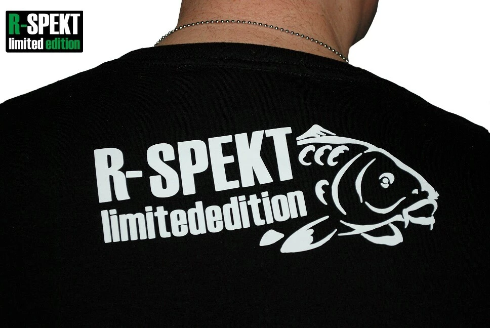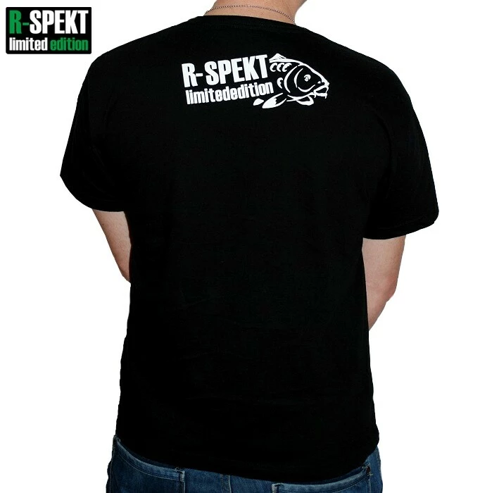 Kvalitní bavlněné černé tričko s V-éčkovým výstřihem pro ještě uvolněnější R-SPEKT styl. Na tričku je použit vysoce kvalitní bílý transferový tisk v podobě motivu obřího kapra přes levou stranu, dále se znakem "R-SPEKT limited edition" na levém rameni. Vzadu za krkem se nachází kombinace nápisu "R-SPEKT limited edition" spolu s dalším motivem kapra.