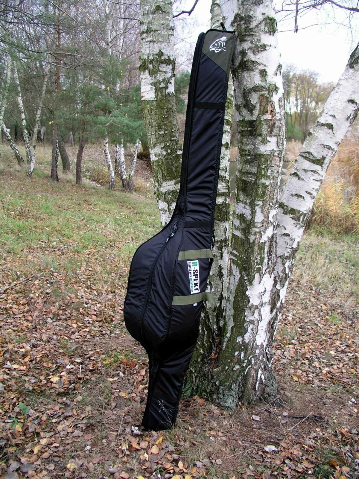 Barevné provedení: kombinace černé a khaki textilie s logem R-SPEKT limited edition a motivem kapra / uvnitř černé
