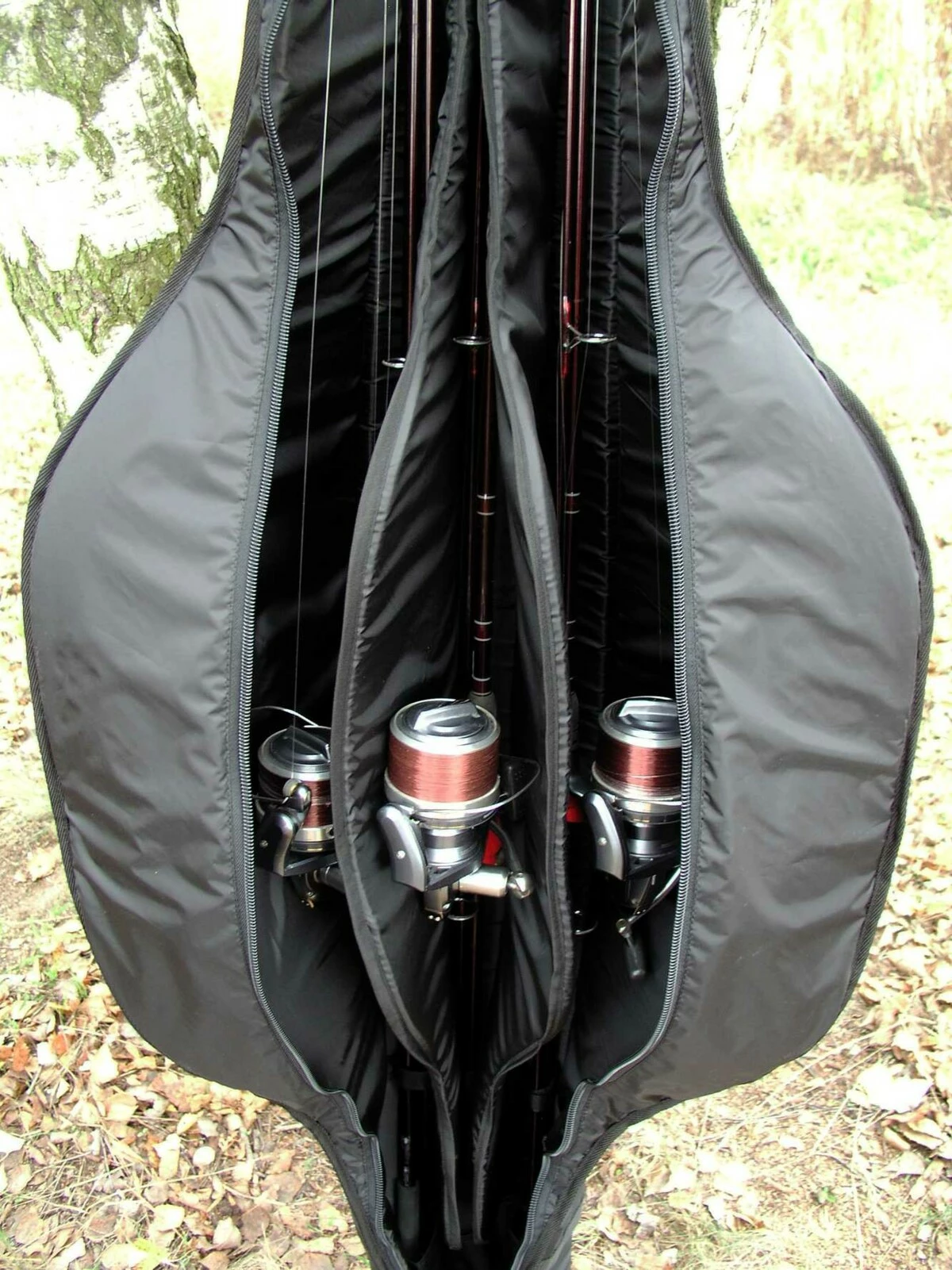 Je kompletně polstrováno speciálním typem 20mm silné VP pěny, která účinně brání poškození prutů či navijáků. Vstup do pouzdra je zajištěn spirálovým zipem, který se rozepne po celé délce pouzdra a umožní rozložení pouzdra na dvě poloviny. Pouzdro je uvnitř podélně rozděleno polstrovanými přepážkami na tři samostatné komory. Každá z těchto komor je určena pro bezpečné uložení jednoho kompletního prutu. Polstrované přepážky účinně brání příp. kontaktu jednotlivých prutů mezi sebou. Ve spodní části pouzdra jsou našity kapsičky, do nichž zasunete rukojeť prutu a dále pak už stačí jen upnout a zajistit pruty pomocí oček ze suchých zipů, zapnout opět spirálový zip a můžete vyrazit k vodě.