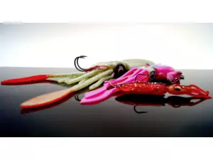Předvážená, háčkem opatřená nástraha pro motáž na boční přívěs. Další info