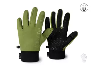 Rukavice MagneTIP mají zdvojenou látku v oblasti zápěstí pro dodatečné zvýšení izolačních vlastností a lepší obepnutí zápěstí. Barevně jsou vyladěny do zelené barvy s efektní grafikou, stylově zkombinované s černou. Obě rukavice mají jednu stranu plastového klipu, pomocí kterého si je můžete spojit a odložit do tašky pro případ potřeby.