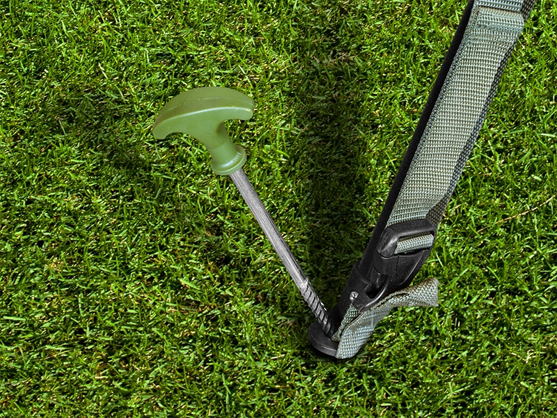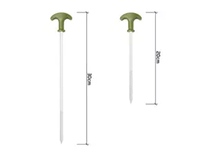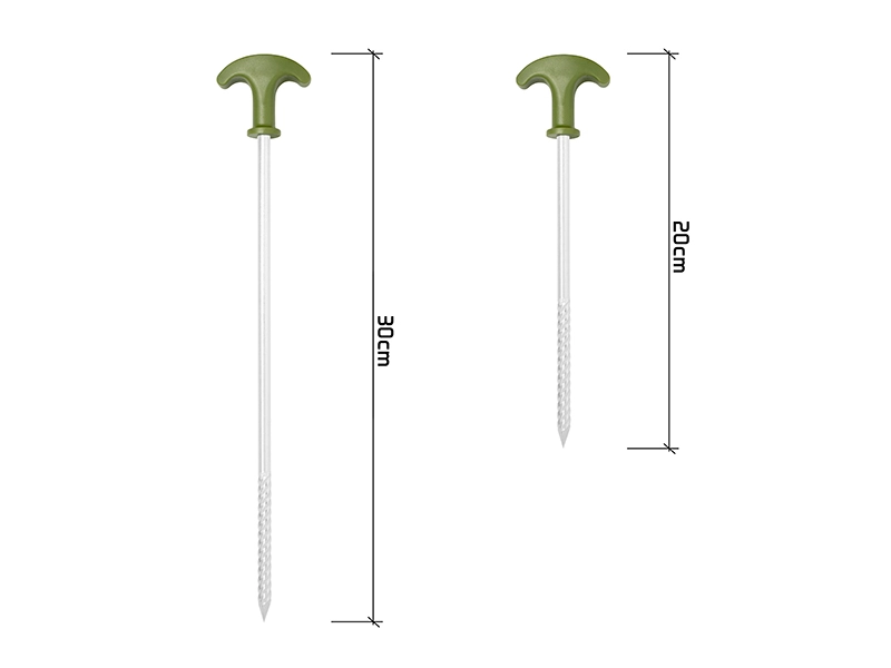 Kolíky disponují plně uzavřenými plastovými hlavami zelené barvy, jejichž výhodou je, že se ani po delší době zabíjení do země nezačnou uvolňovat a sesouvat po kovové části směrem dolů. Vrták s odolným čtyřhranným hrotem napomáhá jednoduššímu zapíchnutí do tvrdé a suché půdy. Hroty jsou při koupi opatřeny transparentními ochrannými krytkami pro zvýšení bezpečnosti. Součástí balení je také pryžové kladivo s kovovou nohou a gumovou rukojetí černé barvy, sloužící pro snazší zabití kolíků do země.