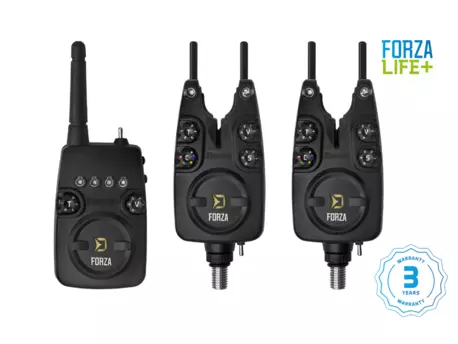 FORZA Life+ je sada signalizátorů s příposlechem, kde se díky vylepšení elektroniky a změně typu baterek v příposlechu podařilo dosáhnout výrazně vyšší výdrže celé sady. Kromě toho však byly zachovány všechny důležité technické parametry i design léty ověřené a tisíci rybářů testované sady FORZA.