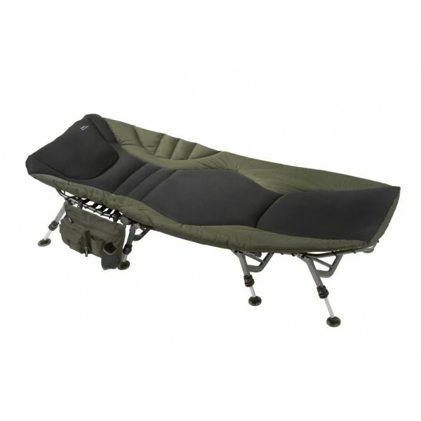 Toto rybářské lehátko je bezpochyby největší komfortní lehátko na současném trhu, které zároveň garantuje i nejvyšší nosnost. Lehátko má robustní hliníkový rám ošetřený práškovou barvou. Má 8 plynule nastavitelných nohou, které jsou zakončeny plochými koncovkami, pro lepší stabilitu a bezpečnost. K lehátku se dodává i praktická boční kapsa. Jeho povrch je silně polstrovaný a polštářky jsou odnímatelné. Materiál použitý při výrobě je voděodolný 1200D a 600D Polyester. Připojen je i potah na spodní část lůžka, abychom si mohli lehnout i v botách. Ložná plocha je 205 x 95 cm. Přepravní rozměry jsou 95 x84 x30 cm a váha je11,6kg. Garantovaná nosnost je 205kg.