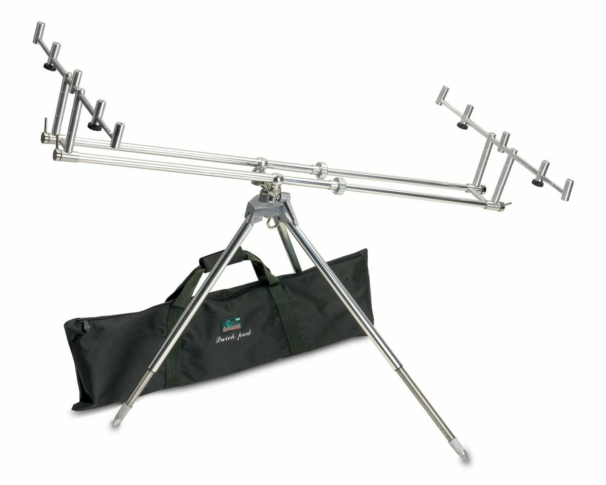 Stojan na pruty je jedna z nedílných součástí kaprařského vybavení. Kaprařský tripod Quick Pod, ale umí překvapit. Přinášíme vám produkt vyrobený z hliníkové slitiny kombinovaný z částí vyrobenými z nerezové oceli . Stojan je stabilní a je vybaven teleskopickými nohami, takže není problém ho pohodlně umístit i do nerovného terénu. Zajímavé je, že jsou vestavěná teleskopická ramena, která vám rázem ze stojanu na 3 pruty, udělají stojan na prutů 5. Celkové váha stojanu Quick pod je 4kg. Součástí výrobku je kvalitní šitý obal. Transportní délka: cca 85 x 20 x 20 cm.