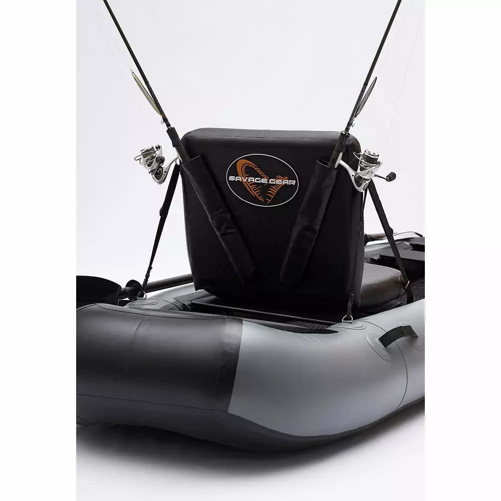 Sedíte velmi pohodlně a vysoko, značně nad vodní hladinou, v dobře polstrované sedačce s držáky na prut.