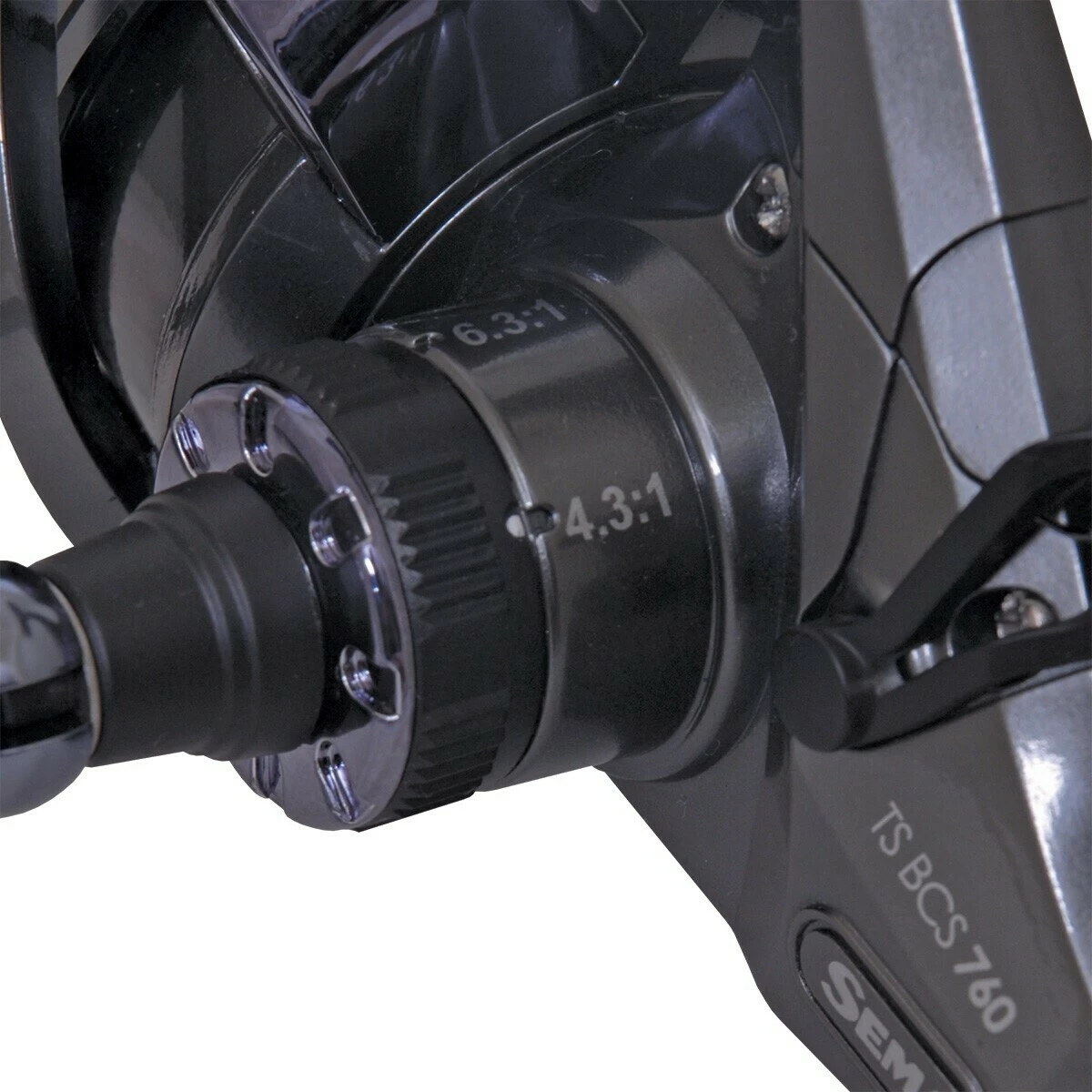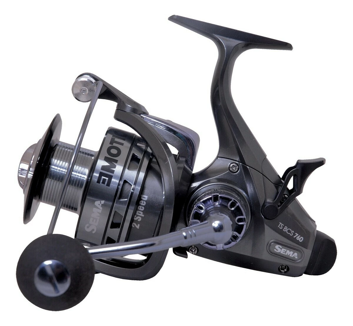 Dvourychlostní naviják s únikovou brzdou. Rychlejší převod lze použít na stahování při zavážení nebo dlouhých odhozech. Pomalejší a tím i silnější převod lze použít při zdolávání ryby.