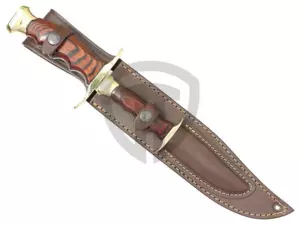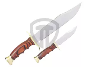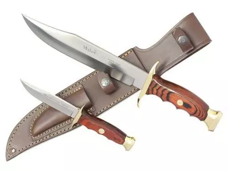 Set velkého a malého nože od španělské firmy Muela, ideální pro lov a pobyt v přírodě. Oba nože jsou vyrobeny ze stejných materiálů a mají také stejný design. Čepel je vyrobena z kvalitní molibden vanadiové oceli, záštita a patka rukojeti jsou mosazné, rukojeť je vyrobena ze dřeva Pakka. Oba nože jsou uložené v jednom koženém pouzdře. Menší nůž má čepel i rukojeť dlouhou 9,5 cm.