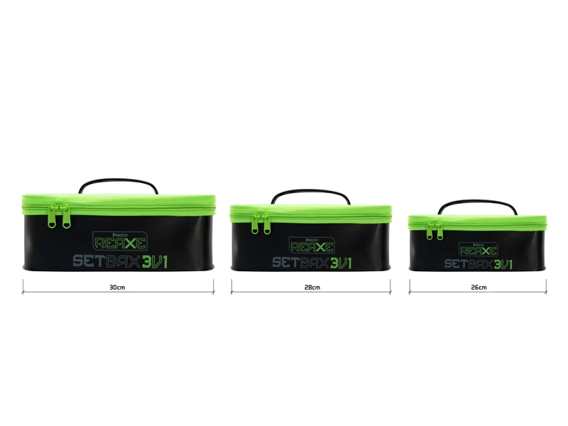 Delphin REAXE SetBAX je praktická sada tří EVA tašek obdélníkového tvaru, které poslouží k uskladnění různého feederového vybavení nebo bižuterie.