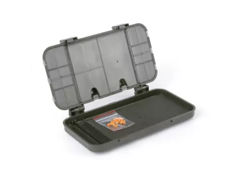 Perfektní řešení pro rybáře, kteří rádi chodí k vodě s už předem připravenými návazci a s potřebnou bižuterií pěkně po ruce. Víko obsahuje 21 různě velkých tenkých přihrádek pro uložení obratlíků, háčků, korálků a dalšího drobného vybavení. Každá krabička z řady LOKBOX™ COMPACT byla navržena s pojistnými klipy Click-Lok a panty Level-Lok, které se otevírají o 180 stupňů a v této pozici se dají uzamknout pro snadnou manipulaci. V krabičce je také pěnová deska pro upevnění 25 návazců, dodáváno včetně 25 kolíků. Pro přesné naměření délky návazce je na vnitřní straně krabičky vyraženo 20cm pravítko. Krabička je tenká, z odolného materiálu a snadno skladná. Vlastnosti: • Kompaktní a pohodlné skladování návazců a drobného vybavení • Deska pojme až 25 hotových návazců • Dodáváno s 25 špendlíky pro upevnění návazců • Víko obsahuje 21 různě velkých přihrádek na bižuterii • 20cm dlouhé pravítko na vnitřní straně krabičky • Dva pojistné klipy Click-Lok pro bezpečné uzavření krabičky • Hliníková tyčka pro uchycení háčků • Panty Level-Lok se zamknou při otevření o 180 stupňů • Rozměry: 24,5 x 13 x 4 cm