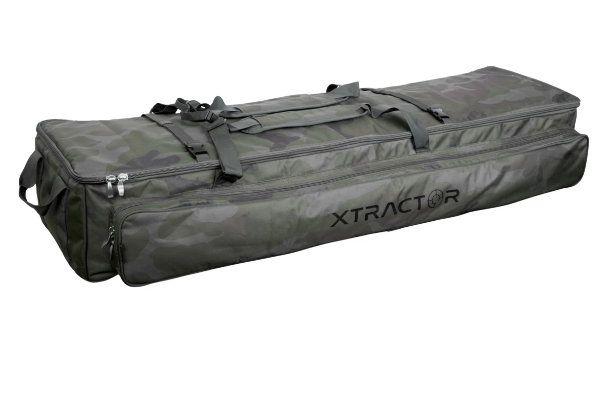 Sonik představuje naprosto ultimátní transportní systém na 3 pruty Xtractor 3-Rod T-50 Transport System. Svou velikostí pojme až tři kaprové pruty se zatahovací rukojetí, jejichž transportní délka je 44" a 50". Díky inteligentnímu nastavitelnému designu pojme pruty s různou délkou rukojetí. Umístění prutů na vnitřní část víka vám umožní rychlý přístup k vašemu dalšímu vybavení uloženému ve třech pouzdrech, které se po vyjmutí skvěle vejdou pod vaše lehátko. Transportní systém lze lehce složit, aby při skladování nezabíral příliš mnoho místa. Je vyroben z našeho ultra odolného Camo Bank-Tek 600D PVC materiálu a je vybaven vysoce odolnou a vodotěsnou základnou. K dispozici jsou také dva horní kompresní popruhy pro upevnění dalšího příslušenství. Díky šikovným popruhům můžete systém nosit v ruce nebo na zádech jako batoh. Vlastnosti: • Posuvné popruhy na pruty umožňují perfektní ochranu prutů s transportní délkou 44" a 50" • Tři vyjímatelná pouzdra na další vybavení, ideální pro uložení pod lehátko • Posuvné držáky navijáku se přizpůsobí různým délkám rukojeti • Skládací design pro kompaktní skladování • Boční kapsa na podběrák a sak • Plně podšité, polstrované a vyztužené pro maximální bezpečnost prutů • Materiál Camo Bank-Tek HD 600D PVC • Velmi odolná vodotěsná základna HD • Boční madla pro snadnou manipulaci