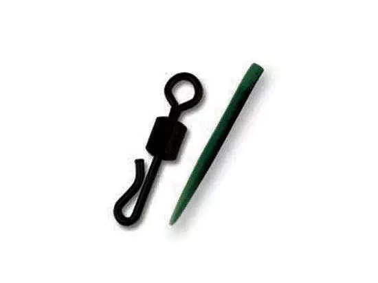 Rychlovýměnné obratlíky: výborná pomůcka pro rychlou výměnu koncových návazců. Očko návazce zatáhnete do otevřeného očka obratlíku a zajistíte převlekem proti zamotání. Tyto obratlíky výborně pasují do našich závěsů na olovo. Jsou vyrobeny s moderní nelesknoucí se poprchovou úpravou "Matt Black" nebo klasickou "Black Nickel (tmavý nikl).