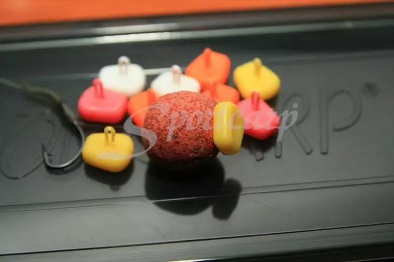 Vylepšená varianta umělé kukuřice, která má háček a tím pádem se dá použít jako zarážka při nastražování boilies nebo pelet. Další info