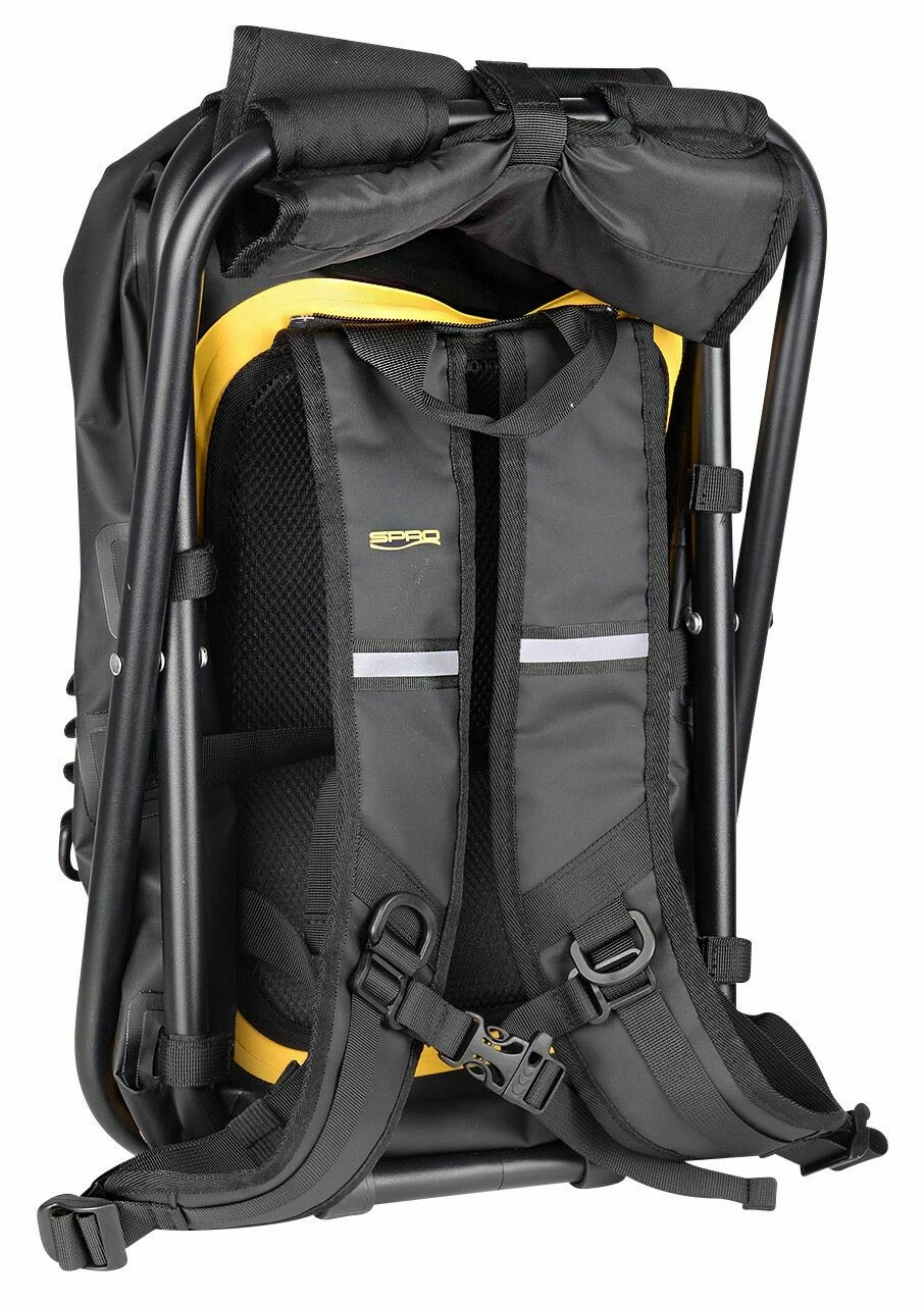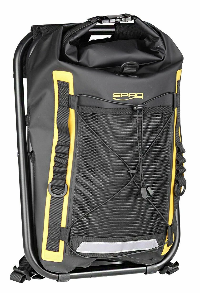 Stolička je připojena ke 100% vodotěsnému batohu, což je ideální pro rybolov v deštivých dnech. Stolička je na spojkách zesílena, aby se nepoškodila, a lze jí odejmout a použít batoh samostatně.
