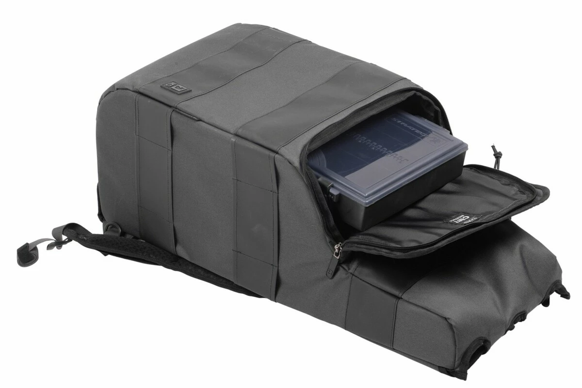 Včetně přední přihrádky na velkou krabičku a další na sáčky s návnadami a další příslušenství. Uvnitř najdete další skladovací přihrádku na dně pro extra vybavení. Přihrádka na navijáky má měkké pěnové bloky pro ochranu Vašich prutů a navijáků. Pěnové bloky lze vyjmout, aby se vešly větší navijáky. Vhodné pro všechny kaprové navijáky od menších 4500 po velmi velké navijáky s volnoběžnou brzdou.