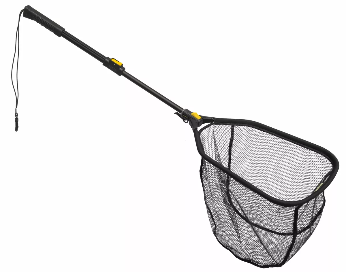 Lehký a kompaktní skládací podběrák na dravce s teleskopickou rukojetí pro případ, kdy je potřeba delší dosah podběráku.