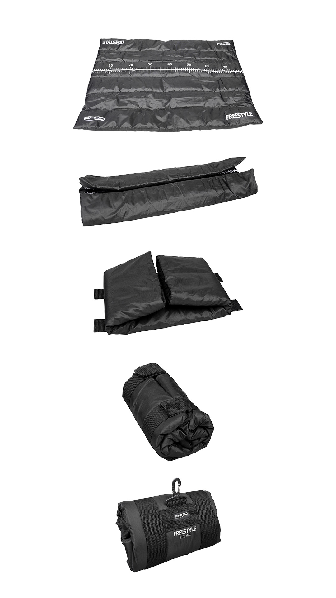 Péče o ryby hraje důležitou roli v sortimentu produktů Freestyle. Lite Mat má speciální výplň, která umožňuje skládání do extrémně kompaktní 12cm role. Položení úlovku na podložku zabrání poškození ryb a umožní vám zodpovědně změřit úlovek. Rohož je také vybavena přesným pravítkem (až 80 cm), které rychle měří váš úlovek při bezpečném odhazování.