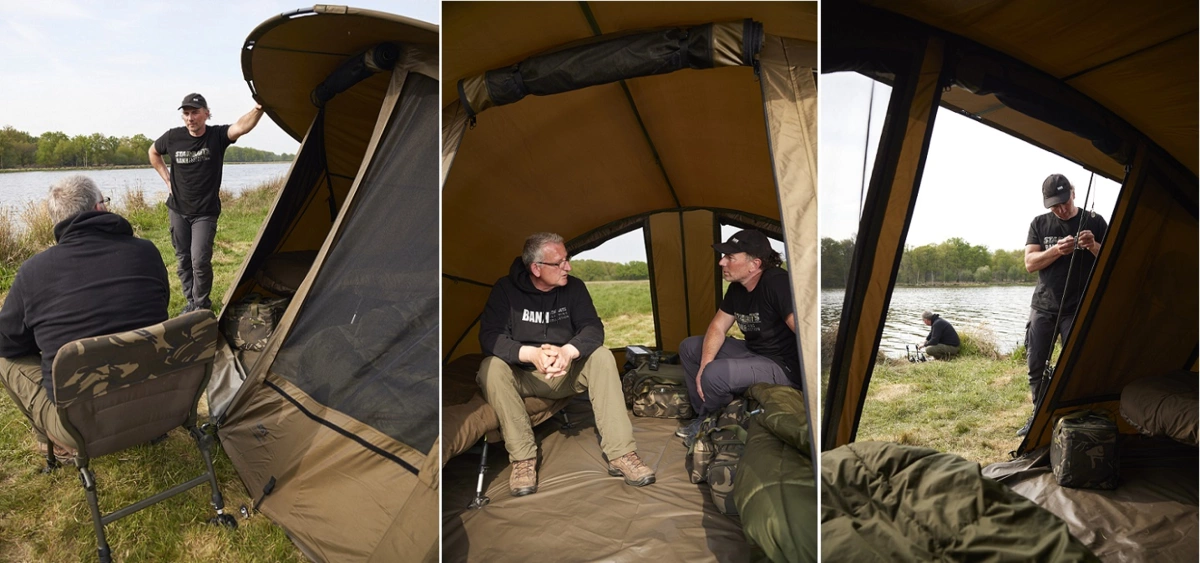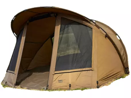 Extra velký bivak pro dva rybáře a dvě lehátka s kšiltem proti dešti a slunci. Prostor na velké množství vybavení.