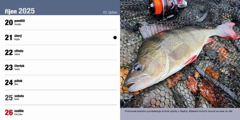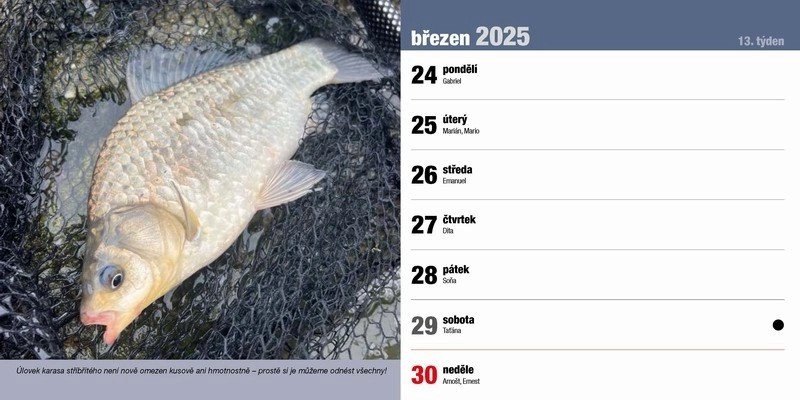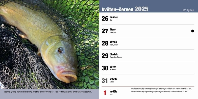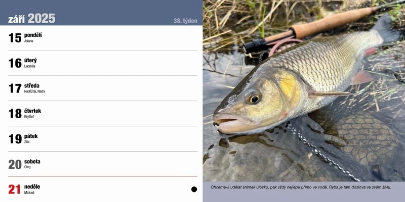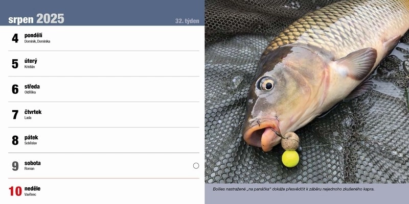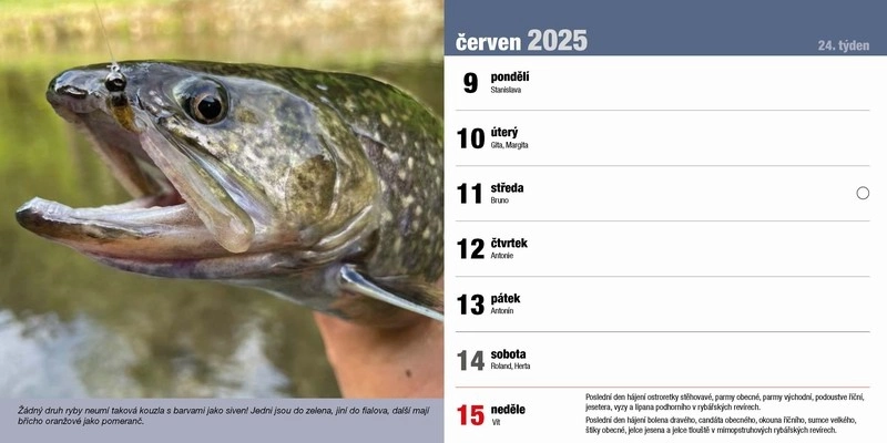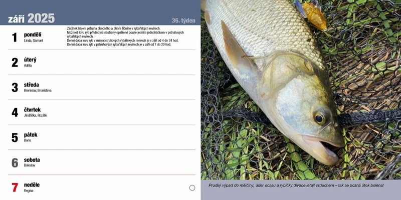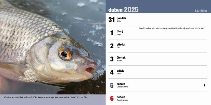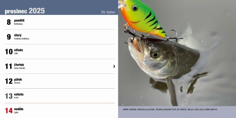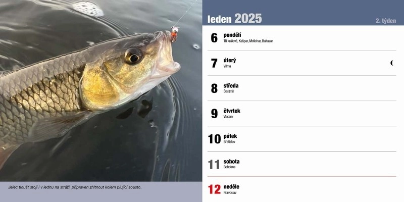 Stolní rybářský kalendář na rok 2025 s rybářskou tématikou. Další info