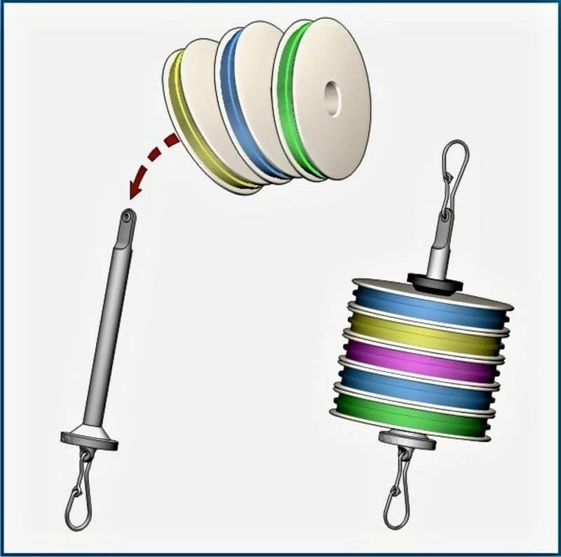 velmi užitečný nástroj na uložení cívek se silonem a připnutí na vestu. Opatřenou gumičkou zamezující samovolnému odvíjení silonu. Další info