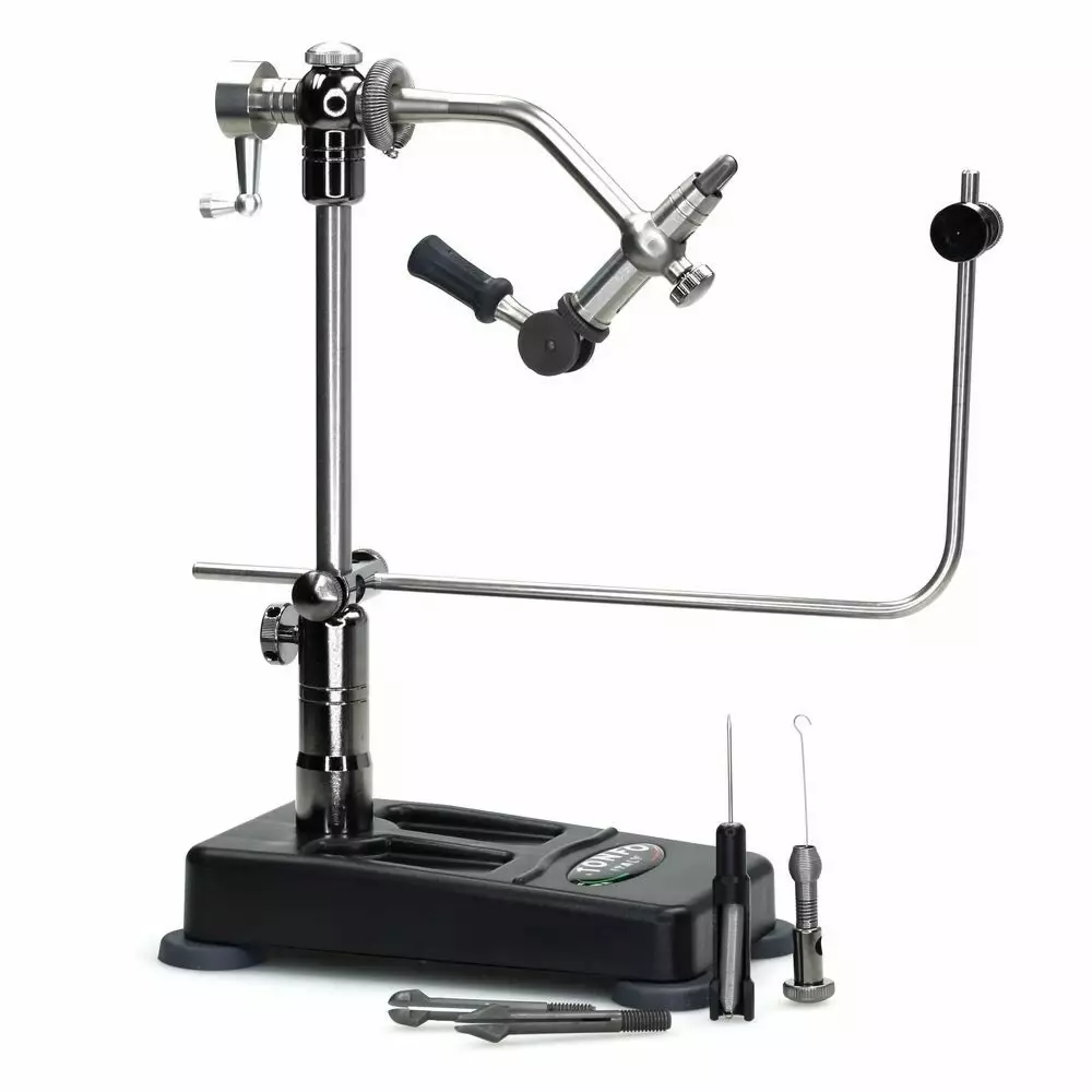 Vysoce kvalitní 360 ° otočný svěrák pro vázání mušek a streamerů. Hřídel z nerezové oceli se otáčí dvěma přesnými kuličkovými ložisky. Nastavitelná brzdící rotace. Uzamykání hlavy na 0 °. Upevnění háčku pomocí pákového zařízení. Kompaktní a lehký. Další info