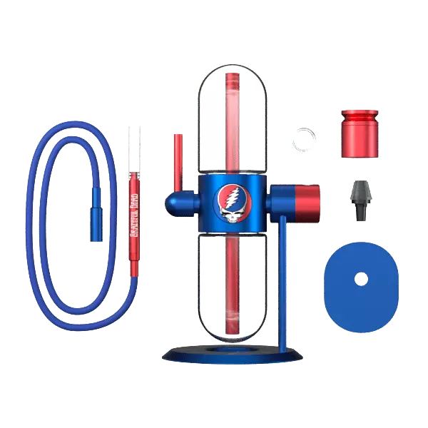 Grateful Dead x Stündenglass Gravity Infuser je navržen pro funkční všestrannost a představuje kompletní sadu, která obsahuje hliníkovou sadu misky na vodní dýmku a skleněnou vložku, ale lze ji také připojit k jakémukoli kuřáckému nebo vaporizačnímu zařízení se 14mm samcem. Součástí balení je třímetrová silikonová hadička, kterou lze připojit pro přímé potahování, ačkoli stálý proud kouře přes 45° nastavitelný náustek poskytuje možnost zcela bezkontaktní konzumace.