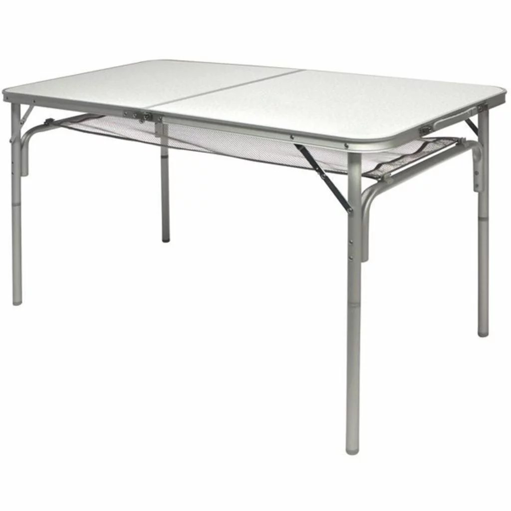 Kompaktní skládací stůl vybaven hliníkovým rámem a MDF deskou, snadno rozložitelný. Rozměry (cm) 120x60x30 / 71 Rozměry ve složeném stavu (cm) 56x56x6,5 Hmotnost (kg) 4,5 Maximální zatížení (kg) 30 Hliníkový rám 25 mm, MDF
