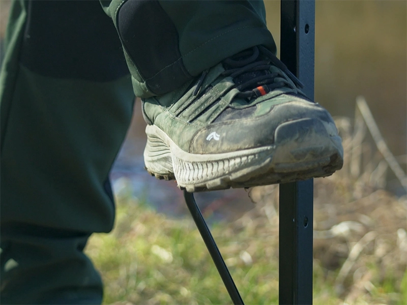 Konstrukce stojanu je vyrobena z odolného kovu, který výborně odolává vnějším vlivům a nechtěnému mechanickému poškození. Spodní část konstrukce je opatřena ostrým hrotem, který umožňuje zapíchnutí stojanu i do tvrdší půdy. Pro lepší manipulaci při zapichování je ke stojanu přivařen nášlap, díky kterému stojan zapíchnete dostatečně hluboko.