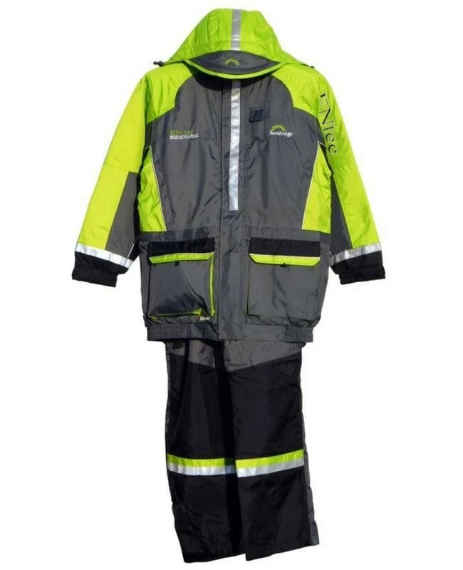 Dvoudílný zateplený komfortní a měkký plovoucí oblek EN-Tec je přibližně o 30 % lehčí než jiné klasické plovoucí obleky. Prodyšný, vzdušný a větruodolný oblek přitom vykazuje skvělé tepelně izolační vlastnosti. Obleky EN-Tec díky svým vlastnostem zcela oprávněně patří mezi nejprodávanější a nejužívanější plovoucí obleky v Evropě. U plovoucích obleků se běžně nedbá ani tak o vzhled, jako o vlastnosti. Tento oblek nemá jen skvělé vlastnosti, ale i skvěle vypadá. Super lehký oděv ve sportovním stylu na první pohled zaujme nejen atraktivními barvami, ale i vynikajícími bezpečnostními parametry. Oblek proto splňuje všechny bezpečnostní parametry, požadované předpisy EU, a značku CE nese dle certifikace normy ISO 12402. Vyrábí se v sedmi velikostech – od velikosti nejmenší (Small) až po největší (varianty King a Giant). Oblek je vyroben z kombinace lehkých a pevných materiálů Taslon a Nylon 210D. Bunda je opatřena navíc polyesterovou podšívkou. Celková vodotěsnost oděvu je 10000 mm vodního sloupce, prodyšnost je 5000 g/m2/24 hod. • CE Certifikát podle ISO 12402 • Lehká plovoucí pěna pro zateplení • Reflexní pásky 3M • Signální píšťalka BUNDA: Límec s kvalitní fleecovou podšívkou, neoprénové manžety na zápěstí, polyesterová podšívka kapuce, zesílené lokty, 2 vnější kapsy, 2 vnitřní kapsy, fleecová výplň kapes pro lepší tepelný komfort, dvoucestné hlavní zipy značky YKK, stahovací šňůrka pro nastavení šířky v pase, extra pevné stehy. VYSOKÉ KALHOTY: Nepromokavá vnější vrstva z polyesteru, polyesterová podšívka a kvalitní zateplení, zesílená místa na kolenou, dvě vnější kapsy, zip značky YKK, suché zipy u kotníkových manžet pro nastavení správné šířky nohavic.