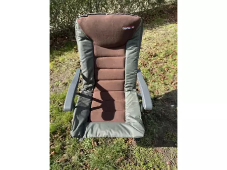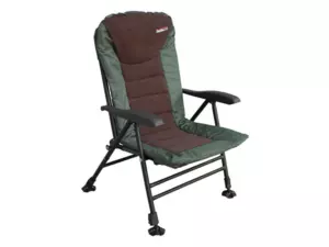Pohodlné a exkluzivní rybářské křeslo s anatomicky tvarovanou matrací. Konstrukce křesla je ocelová o tloušťce stěny 2mm a velmi jednoduchá, pevná s nosností až 160kg, jeho rozložení či složení je otázkou několika vteřin. Opěradlo má pohodlný polštář a na bocích matrace je lem, chránící před větrem a zimou. Pevné područky slouží k naklápění opěradla při jejich nadzdvižení (8 poloh). Teleskopické nohy jsou vybaveny spolehlivou aretací a protiskluzovými packami proti zaboření. Výška sedáku 37 - 56 cm bude pro mnohé velkou výhodou, při častém vstávání k prutům.