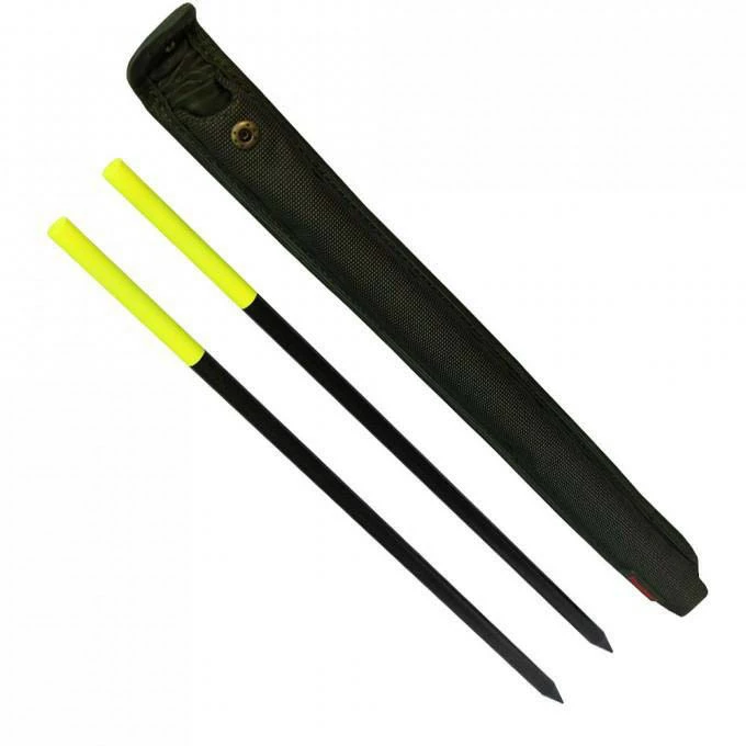 Spot on Sticks je pár zapichovacích tyček v kvalitním a stylovém zeleném pouzdře. Tyče jsou černé s fluo-žlutým zakončením pro snadnější orientaci v šeru. Slouží k odměření přesné vzdálenosti náhozů. Postup použití: nalezněte si pomocí markeru vaše místo pro chytání a zaklipujte vlasec. Namotejte a prut položte na zem, jednu tyč zapíchněte u špičky a druhou u konce prutu. Začněte u jedné tyčky a postupně odmotávejte vlasec, dokud se nedostanete na klip. Spočítejte počet ovinů a víte přesně, kolik jich máte příště odmotat, až budete opět nahazovat! Přesné místo mezi tyčkami lze označit nerezovými kolíkami s číslicemi, coby značka konkrétního prutu. Spot on Sticks lze použít i jinými způsoby.