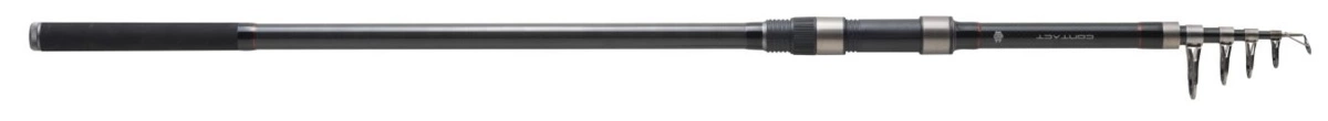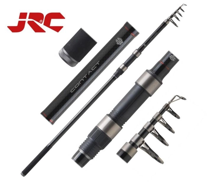 Luxusní JRC Contact LR Tele-Carp, velmi štíhlý kaprový teleskopický prut z vysokomolekulárního uhlíku, vyznačující se svou maximální pevností a rychlostí.