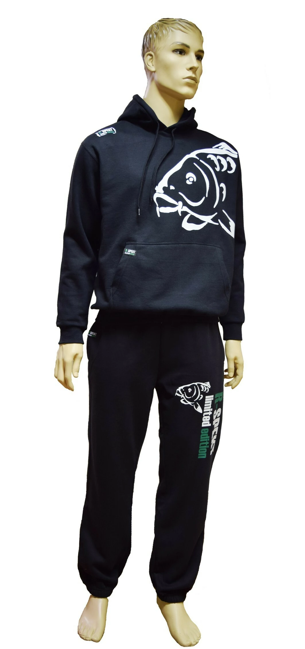 Pro sezónu 2017 přicházíme se zcela novou teplákovou soupravou R-SPEKT Carper black. Soupravu tvoří mikina s klokaní kapsou a kapucí a dále tepláky v praktické základní černé barvě s velmi kvalitní aplikací transferového tisku a to hned na několika zajímavých místech. Na přední straně mikiny je umístěn velký tisk s motivem kapra, které doplňuje na rameni logo R-SPEKT limited edition. Na zadní straně mikiny pak najdeme dole ještě jeden menší motiv kapra a konečně kapuci zkrášluje také stylové logo R-SPEKT limited edition.