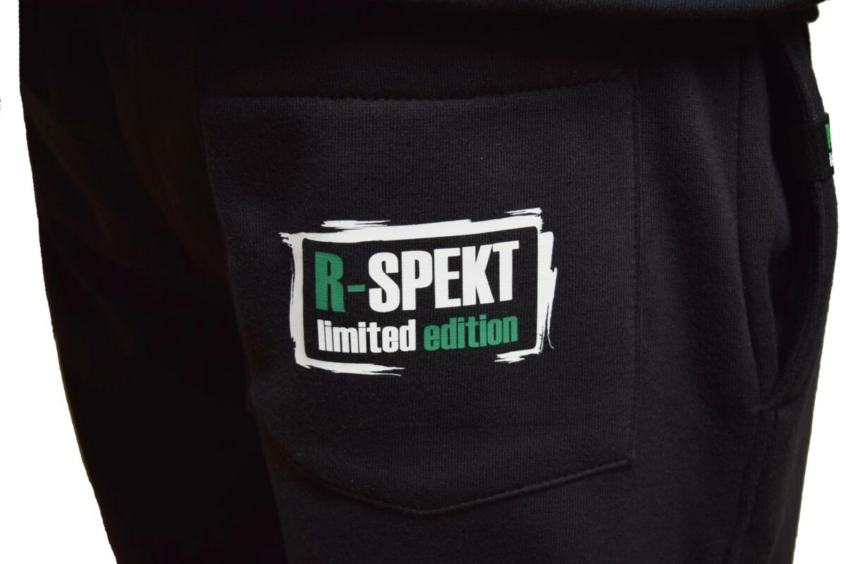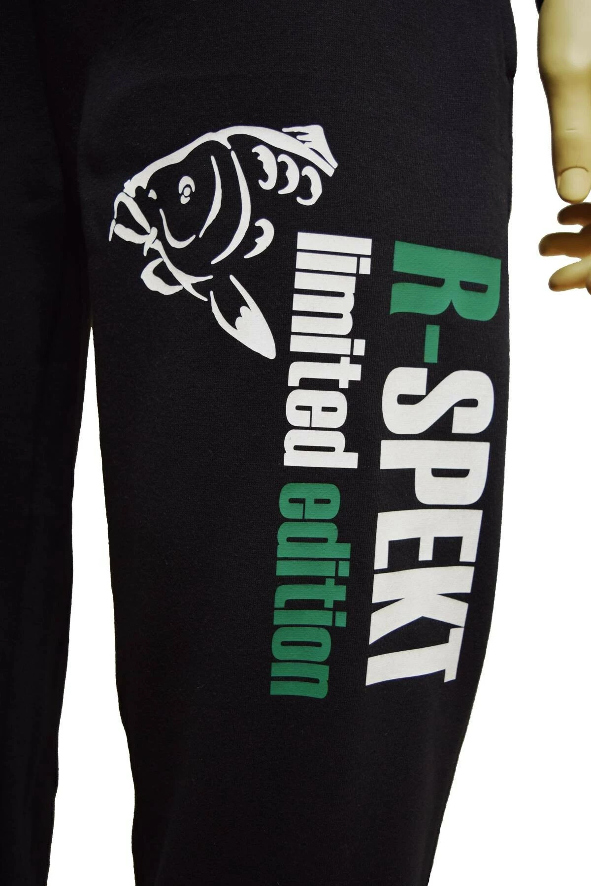 Na teplácích najdeme dvě velké a hluboké postranní kapsy a dále pak jednu našitou zadní kapsu, na níž je natištěno logo R-SPEKT limited edition. Hlavní tiskový motiv se u tepláků nachází vpředu na levé stehenní části a to v podobě atraktivní kombinace většího loga R-SPETK limited edition a motivu kapra. Pas je řešen širokou kvalitní elastickou gumou spolu se stahovacími šňůrkami v černé barvě, které lze tak pohodlně zavázat a zajistit. Spodní lemy nohavic obepínají také pružné gumy, díky nimž neproniká k nohám ze spodu případná nepříznivá nízká okolní teplota.