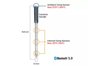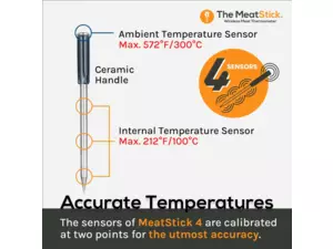 Bezdrátový teploměr MeatStick je zkonstruovaný tak, aby vydržel vysoké teploty, lze mýt v myčce nádobí a díky výdrži baterie 50 hodin je ideální pro sous-vide; ideální pro pomalé vaření při nízkých teplotách. Obsahuje 4 senzory (3 vnitřní odolají až 100°C teploty masa, vnější až 300°C teploty masa).