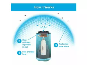 Ochrana proti komárům funguje díky tepelně aktivovanému polštářku, který uvolňuje repelent do vzduchu a vytváří tak ochranné pásmo proti komárům s plochou cca 20m2.